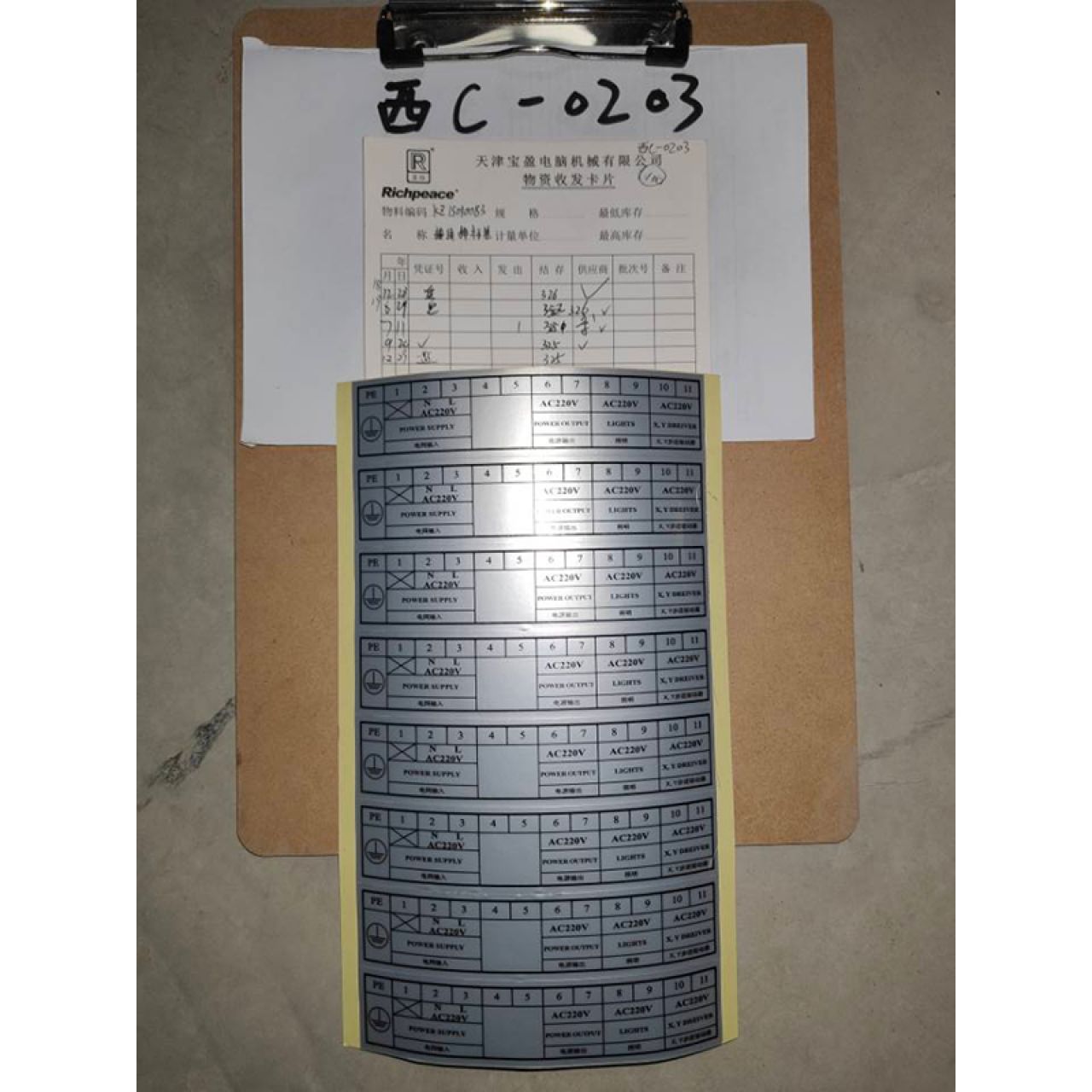 接线排标签(A220v输入)三相220v绣花机专用 KZ.15010083