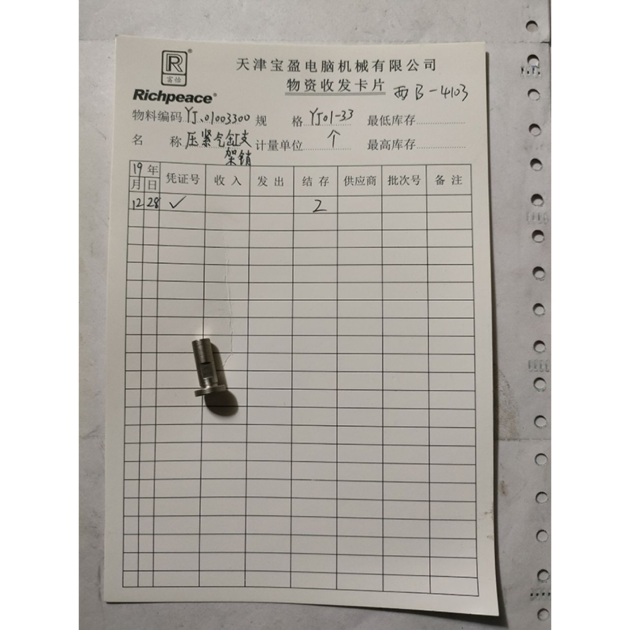 压紧气缸支架销 YJ.01003300 YJ01-33